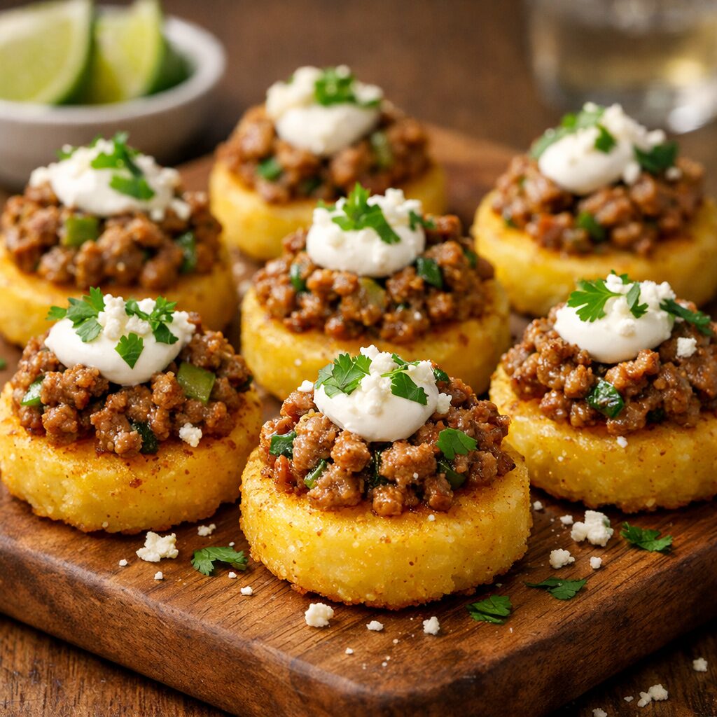 - Grill or pan-sear polenta rounds in a drizzle of olive oil until crisp.